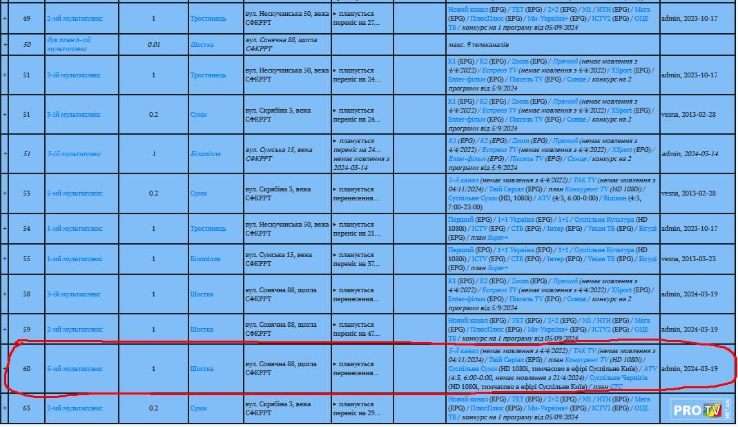 из Шостки, на 60 ДМВ канале